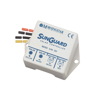 Controlador solar SG-4 12 V 4.5 A de MORNINGSTAR, con tecnología PWM y 100 %25 estado sólido. Ofrece protección contra sobrecargas y descargas, garantizando una vida útil prolongada de las baterías. Su diseño compacto y duradero incluye compensación de temperatura, ideal para diversos sistemas de energía solar.