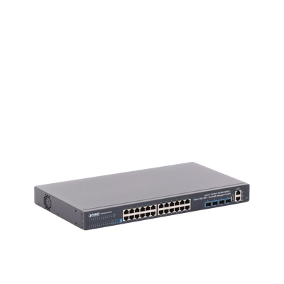 El Switch Administrable SGS-6341-24T4X de la marca PLANET es un dispositivo de red de alto rendimiento con 24 puertos 10/100/1000T y 4 puertos 10G SFP+. Posee una CPU de 400 MHz, 512 MB de RAM y 16 MB de FLASH. Destaca por su capacidad de auto-recuperación y transmisión de datos con un rendimiento de hasta 128 Gbps. Ideal para centros de datos y telecomunicaciones.