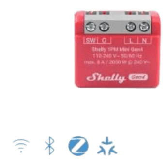 Un interruptor inteligente compacto con medición de energía para controlar luces y pequeños electrodomésticos de hasta 8 A. Equipado con chip Shelly y soporte de conectividad multiprotocolo: Wi-Fi, Zigbee, Bluetooth, Matter.