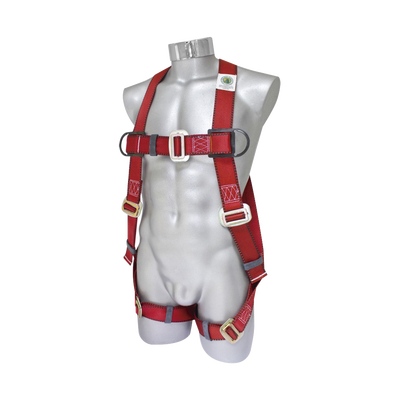 Arnés de seguridad con amortiguador SKIT005, arnés de cuerpo completo, 1.83mts de amortiguador, 5 puntos de ajuste, diseño especializado para caídas. Incluye punto fijo de 0.90mts, maleta porta equipo y anillo \%27D\%27 deslizable. Proporciona máxima seguridad en alturas.