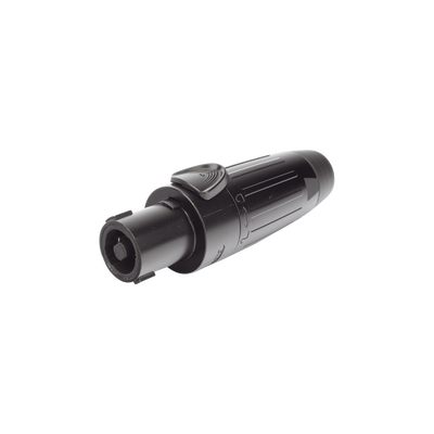 Conector Speakon SLDF4-B 4 polos 30A carcasa negra resistente. Tipo de conexión SPEAKON, conector hembra, clasificación continua de 30 amperios, cableado recomendado de hasta AWG10 y protección IP54. Ofrece un diseño robusto y una conexión segura.