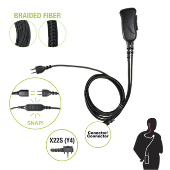 Descubre el Micrófono con cable SNP-1W-22S-BF de PRYME, diseñado con cable de fibra trenzada y conector SNAP de dos pines. Sus características incluyen un encapsulado que garantiza audio de alta calidad y un clip de metal para evitar daños internos. Este micrófono es suave y confortable, y su diseño resistente a enredos aumenta su durabilidad.