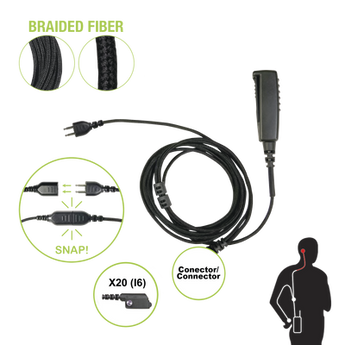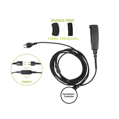 Cable para micrófono SNP-2W-20-BF conector p-snap 2 hilos compatible radios Icom fibra trenzada intercambiable y sin polarizar robusto seleccione auricular