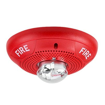 La Bocina con lámpara estroboscópica SP-SCR de SYSTEM SENSOR es ideal para montaje en techo. Opera a 25/70 volts con una intensidad de sonido de 85 dB. Ofrece selección de potencia de ¼ a 2 watts y un voltaje estrobo de 12/24 Vcc. Su color rojo la hace altamente visible, perfectas características para seguridad en cualquier espacio.