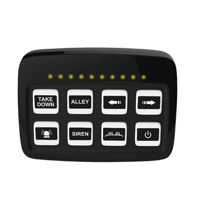 Controlador universal SP03 12-24 Vcd 32 A con 8 interruptores, botones táctiles retroiluminados y 35 calcomanías. Cumple con ECE R10, permite voltajes de 10-24VCD, con salidas de hasta 10A. Su diseño robusto asegura durabilidad en condiciones extremas y su capacidad mutualmente excluyente facilita la gestión del tráfico.