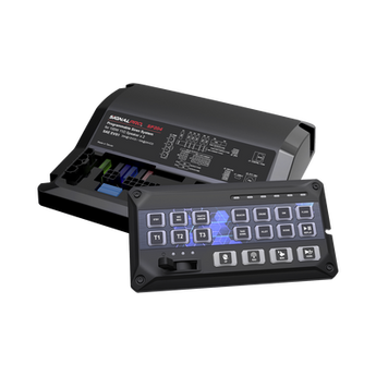 | E/S | Alimentación, IGN (encendido), Salida de altavoz x2, Salida de corriente alta x3, Salida de corriente media/baja x9, Entrada lógica x4, Entrada analógica de voltaje variable x1, Entrada de audio de radio, Micrófono TRS (opcional), Puerto de controlador, Puerto USB de enlace de PC |