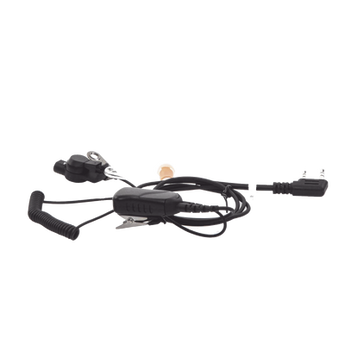 Micrófono de solapa SPM-1301 de PRYME, diseñado para radios Kenwood. Equipado con un tubo acústico transparente de bajo perfil, botón de PTT integrado y cable robusto para máxima durabilidad. Ideal para entornos de seguridad privada, proporciona una comunicación clara y discreta.
