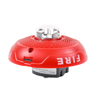 La Bocina con lámpara estroboscópica SPS-CRL de SYSTEM SENSOR, diseñada para montaje en techo, destaca por su estética moderna y alta fidelidad de sonido. Soporta temperaturas de funcionamiento de 0 °C a 49 °C, un rango de humedad del 10 al 93%25 sin condensación, y cuenta con un voltaje nominal de estrobo regulado de 12 DC o 24 DC. Con una velocidad de flasheo de 1 flash por segundo, esta bocina es ideal para sistemas de notificación y comunicación de emergencias.