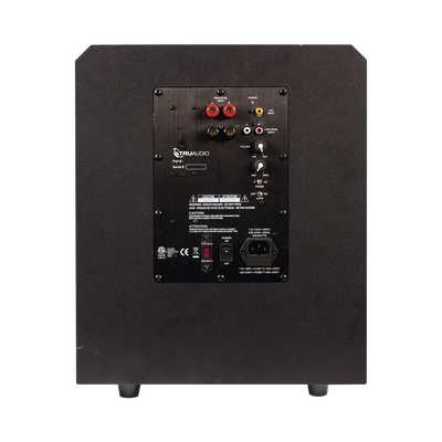 Subwoofer activo TRUAUDIO SS-10 de 10 pulgadas y 150W, perfecto para cine en casa. Con diseño de disparo frontal y puerto de ranura, ofrece graves profundos y un sonido potente. Sus dimensiones son 16%22 x 16%22 x 13.4%22 y cuenta con entradas RCA, LFE y alto nivel.