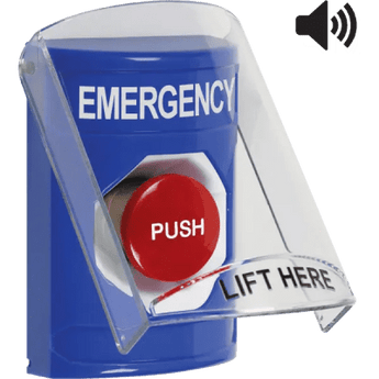 Botón multipropósito SS24A4EM-EN de STI, diseñado para activar respuesta rápida con su tapa de policarbonato y bocina de advertencia. Listado UL/cUL S7255, cumple con ADA y CE, con carcasa de policarbonato resistente y placa trasera de acero inoxidable. Ideal para interiores, con propiedades de trabajo de -40 a 121ºC y más de 100,000 operaciones garantizadas.