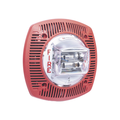 Bocina con estrobo SSPK-24PR 87.9 db 24 vcc 155 x 155 x 48 mm diseño para instalación en pared selección de potencia ajustable