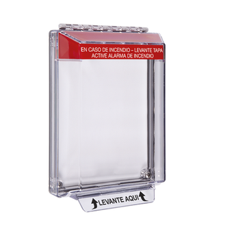 Cubierta universal transparente STI-14010FR-ES policarbonato superresistente adaptada a alarmas rango temperatura -40° a 250°F protección contra vandalismo protección contra daño accidental