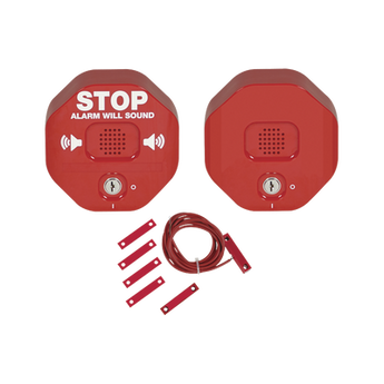 - Alarma de puerta multifunción Exit Stopper® para puerta doble con bocina remota