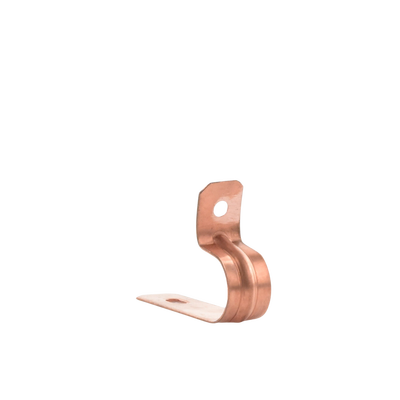 Abrazadera de cobre TG-ACP, fabricada en cobre, sujeta el cable al muro permitiendo una fijación duradera. Asegura que el cable se mantenga en su lugar, ideal para diversas aplicaciones.