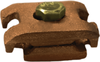 Abrazadera para tierra fabricada en Cobre, complementada por 1 tornillo hexagonal tropicalizado de 3/8” x 3/4”.