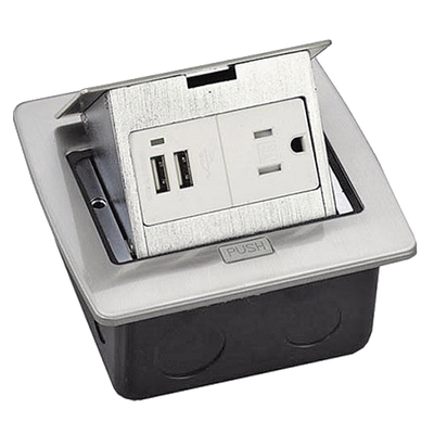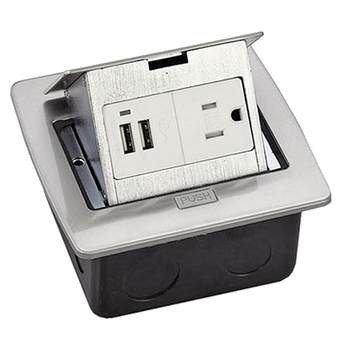 Caja de piso TH-MCPU 12.4x12x7.2cm 250v-10amp usb 2.5vcc-0.7a Acabados de aluminio incluye manual y tornillos