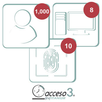 La licencia permite utilizar el software Acceso3 TITANIUM, la más completa solución de Asistencia que permite administrar los horarios, incidencias, faltas, tiempo extra etc de los empleados, con posibilidad de integrarse con los softwares de nómina más utilizados en México.