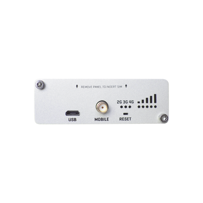TRB140 es una puerta de enlace industrial ultrapequeña, ligera y energéticamente eficiente equipada con capacidades LTE Cat 4 de misión crítica, interfaz Gigabit Ethernet, entradas/salidas digitales y puerto micro-USB.