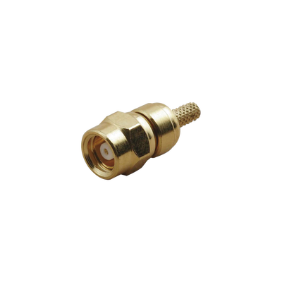 Conector SMC macho TT-SM-0024 tipo RG-58U anillo plegable bronce dorado contacto central oro. Conectores de alta calidad, fabricados en bronce con recubrimiento de oro, diseñados para cables RG-58/U y LMR-195. Su modo de ensamble de anillo plegable permite una instalación fácil y mejora la calidad de la señal al minimizar la pérdida.