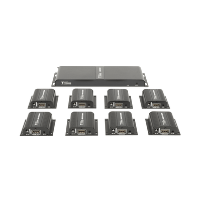 Conectores Extensor HDMI TT718PRO Resolución 1920x1080 a 60Hz, Transmisión 40 metros, Compatible con CAT6, Kit incluye 1 concentrador y 8 receptores, Permite exhibición de contenido en múltiples pantallas.