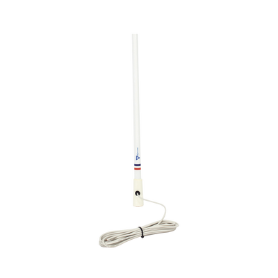 • Construcción Robusta: Fabricada en fibra de vidrio de color blanco, la antena resiste la corrosión del agua salada y los efectos del sol, siendo perfecta para su uso prolongado en el mar.
