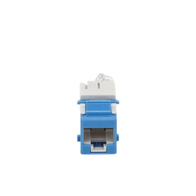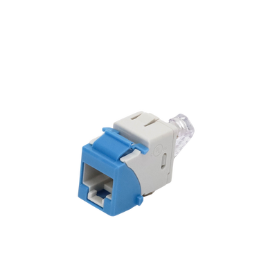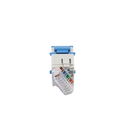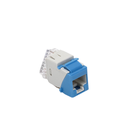 Jack UltraMAX U5-K06NS de cobre Categoría 5e, con instalación en Faceplate Keystone y color azul. Este jack UTP (sin blindaje) ofrece terminaciones rápidas con pinza de impacto (110). Ideal para proyectos de cableado estructurado, acepta ponchado T568A o T568B, y es perfecto para conexiones de dispositivos informáticos.