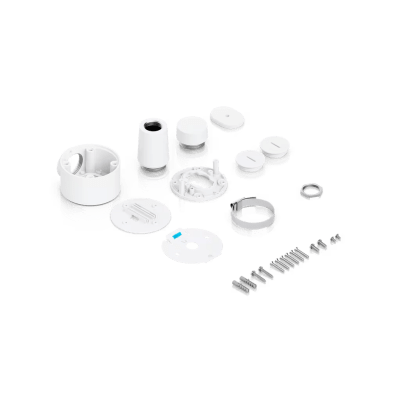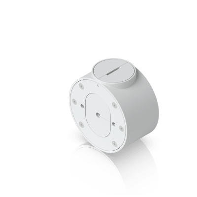 Caja de conexiones a prueba de manipulaciones para cámaras compactas UniFi Dome y Turret que mejora la durabilidad del montaje, la estética y la facilidad de mantenimiento.