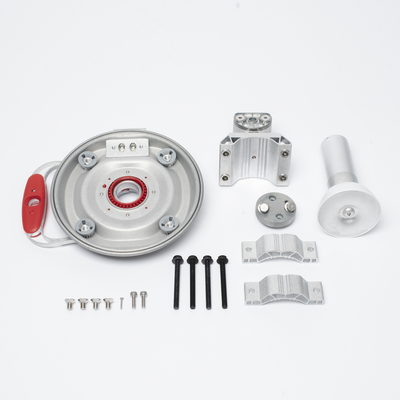 La antena se desliza fácilmente en el soporte y el ajuste de la elevación y el azimuth es sencillo gracias a las medidas angulares grabadas con láser directamente en el soporte. Mantenemos la combinación estándar de herramienta hexagonal de 5 mm y llave de 13 mm para que sea suficiente para apretar todos los tornillos.