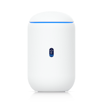 Router de escritorio UDR7 10G WiFi 7 integrado con switch de 4 puertos y almacenamiento de 64 GB microSD. Modelo UDR7, Cloud Gateway de 10G, máximo soporte hasta 30 dispositivos UniFi y 5 cámaras HD. Ideal para hogares y oficinas con alta demanda de red.