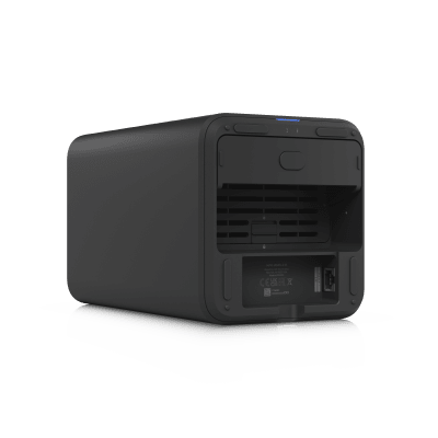 Almacenamiento en red UNAS-2-B NAS de UBIQUITI, compacto con 2 bahías para HDD de 3.5%22, 2.5 GbE, USB-C, ideal para gestión y respaldo de datos. Ofrece cifrado y acceso mediante UniFi Drive para mayor seguridad.
