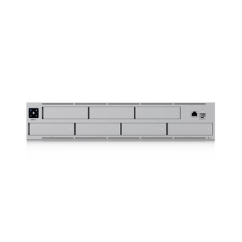 Servidor de almacenamiento en red UNAS-PRO 2U, ideal para empresas. Posee 7 bahías para HDD/SSD, rendimiento de 10 Gbps, enlace SFP+ y pantalla táctil de 1.3%22 para fácil administración.