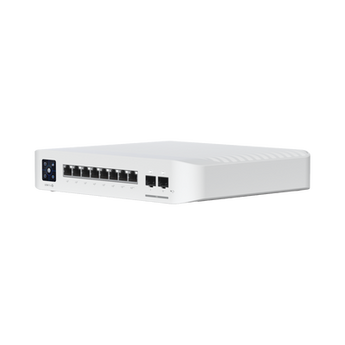 Switch administrable UniFi Pro 8 PoE USW-PRO-8-POE, diseñado para redes de alto rendimiento. Con 8 puertos GbE (6 PoE+ y 2 PoE++), capacidad total de 120 W en PoE, pantalla táctil de 1,3%22 y un diseño robusto, ideal para entornos empresariales y aplicaciones críticas.