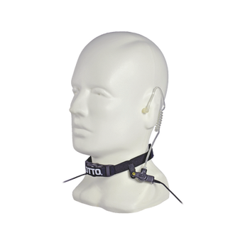 Micrófono de garganta V1-T12MF117 compatible con radios Motorola y Hytera, botón de PTT en el cable, tubo acústico plug and play. Compatible con modelos como EP350, EP450, APX y DP, incluye un adaptador jack de 2.5mm. Diseñado con avanzada tecnología de micrófono que transmite la voz incluso al susurrar y cuenta con una correa elástica confortable para largas jornadas. Permite una comunicación clara y efectiva en ambientes ruidosos.