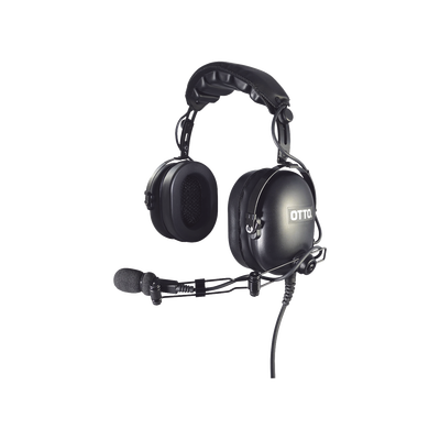 Diadema de uso rudo V4-10943 de OTTO, fabricada con plástico y metal resistente. Con una longitud de cable de 1.5 metros, pesa solo 250 gramos y es ideal para uso prolongado gracias a su diseño ergonómico. Su aislamiento acústico efectivo mejora la comunicación en entornos ruidosos.