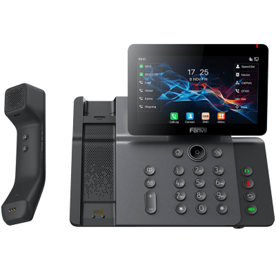 El Fanvil V66 Pro es un teléfono IP empresarial de gama alta que combina comunicación de voz y video en un dispositivo profesional con diseño avanzado. Incluye un microteléfono inalámbrico Bluetooth con localización y emparejamiento automático, ideal para entornos ejecutivos modernos. Su pantalla táctil IPS de 7 pulgadas giratoria, Wi-Fi 6 y Bluetooth 5.4 garantizan una experiencia de usuario superior. Fabricado con materiales antimicrobianos, es perfecto para espacios de trabajo exigentes y seguros.