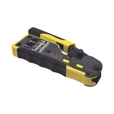 - Poncha conectores modulares de 4, 6 y 8 posiciones (conectores estándar RJ11/RJ12 y conectores RJ45 Pass-Thru™ de Klein Tools).