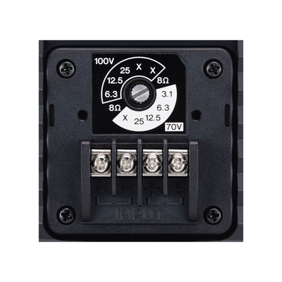 - Impedancia: 70/100v (15W, 7.5W, 3.8W, 1.9W) y 8 ohmios