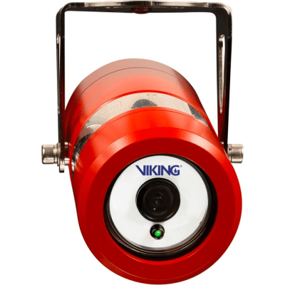 Detector de flama VSF301 de VIKING, ideal para detección temprana de incendios. Capacidad de detección de fuego de n-heptano a 200’, JP4 a 300’, grabación de vídeo a bordo y procesamiento de imágenes en directo. Funciona con salida de vídeo en color y prueba óptica continua sin reflector, mejorando la seguridad industrial.