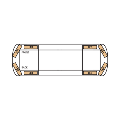 Configuración: 12 módulos con 3 LED c/u en color Ámbar, 4 módulos esquineros con 3 LED c/u en color Ámbar, 2 módulos frontales con 4 LED c/u en color blanco como luz de penetración y 2 módulos laterales con 4 LED c/u en color blanco como luz callejonera