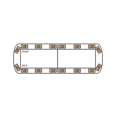 Configuración: 12 módulos con 3 LED c/u en color Verde, 4 módulos esquineros con 3 LED c/u en color Verde, 2 módulos frontales con 4 LED c/u en color blanco como luz de penetración y 2 módulos laterales con 4 LED c/u en color blanco como luz callejonera