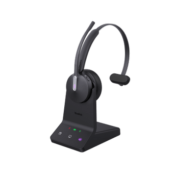 La Diadema Inalámbrica WH64 Mono de Yealink con Certificación Teams ofrece 14h de conversación y 41h de música en Bluetooth. Con tecnología DECT, diseño ergonómico y un brazo ajustable de 280°, es ideal para largas jornadas laborales. Su peso es de 92g (auricular) y 180g (base), además de contar con conectividad USB para PC y teléfonos IP.