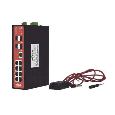 El Switch industrial WI-PMS312GF-I de WI-TEK es un dispositivo de red con 8 puertos 10/100/1000 Mbps, ideal para aplicaciones de videovigilancia y entornos industriales. Con dimensiones de 200 x 140 x 50 mm y un presupuesto de 300W, cuenta con protección contra rayos de 8KV, ventiladores para refrigeración y funciones avanzadas como Smart PoE Watchdog. Su instalación flexible admite montaje en pared y raíl DIN, brindando una solución de red confiable para el mercado WISP.
