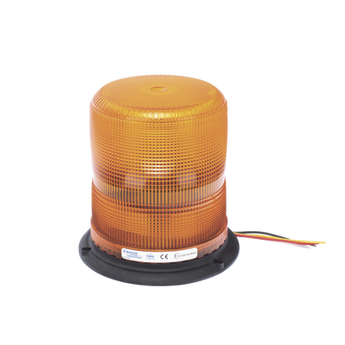 Burbuja Ultra Brillante X7950-A 12-48 Vcc 1.3 amp, con 11 patrones de destello y base de aluminio. Ideal para señalización, fabricada en policarbonato ámbar. Durabilidad y fácil instalación garantizadas.
