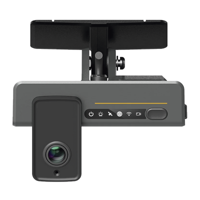 La Dashcam cuenta con dos lentes. Un lente frontal de 5MP y un segundo lente interior de 2MP. Soporta almacenamiento en dos memorias MicroSd soportando hasta 256GB por tarjeta.