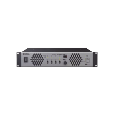 Amplificador multicanal XMV4140D de YAMAHA, diseñado para montaje en rack 2U. Ofrece 4 canales de salida con 4 x 140W @ 8/4Ω, 2 x 280W en modo doble potencia y 4 x 125W @ 70V / 100V. Su interfaz es simple y fácil de usar y es conmutable para sistemas de impedancia baja y alta, facilitando su integración en diferentes aplicaciones de audio.