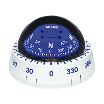 Brújula para kayak XP-99W en color blanco, cuenta con esfera de lectura directa de 2 3/4%22 (70 mm), altura de montaje baja y montaje superficial. La brújula garantiza un rango operativo de temperatura extendido y tiene imanes de fuerza directiva exclusivos. Pivote de acero endurecido para mayor durabilidad y no requiere cableado ni energía. Ideal para entusiastas del kayak y navegación aquática.