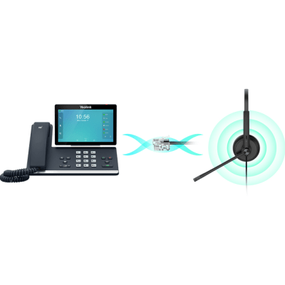 - Plug-and-play con conectividad RJ9 a teléfonos IP Yealink