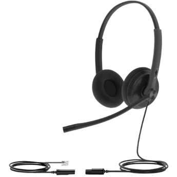 Diadema alámbrica YHS34-LITE-DUAL con cable de 0.9m en color negro. Ofrece conectividad RJ9 plug-and-play a teléfonos IP Yealink y experiencia en audio HD. Su diseño ultra ligero y micrófono con cancelación de ruido mejoran las comunicaciones, ideal para largas jornadas laborales.