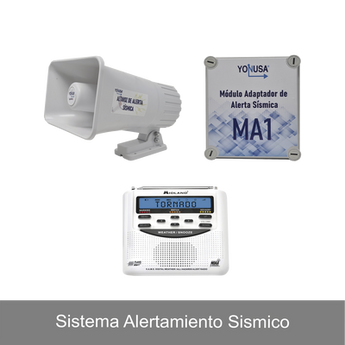 Kit de alertamiento sísmico YKIT-SISMICO de YONUSA, audio de alerta sísmica de 30W con tono de 120 dB. Compatible con el Sistema de Alertamiento Sísmico Mexicano (SASMEX), ofrece transmisión en 7 canales y conexión de sirena en terminales de bornera. Proporciona una señal de alerta constante y fiable, ideal para instalación en ubicaciones remotas.
