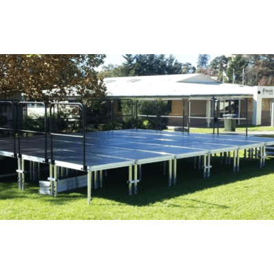 La Tarima modular YS4 200x100 cm de aluminio antiderrapante es perfecta para crear escenarios temporales. Con 200 cm de largo, 100 cm de ancho y 7.8 cm de alto, está fabricada en aluminio con madera de 1.8 cm, asegurando una superficie robusta y segura. Su recubrimiento antiderrapante brinda mayor seguridad, mientras que el diseño modular permite ensamblar múltiples tarimas fácilmente, usando 4 piezas por tarima para asegurar estabilidad.